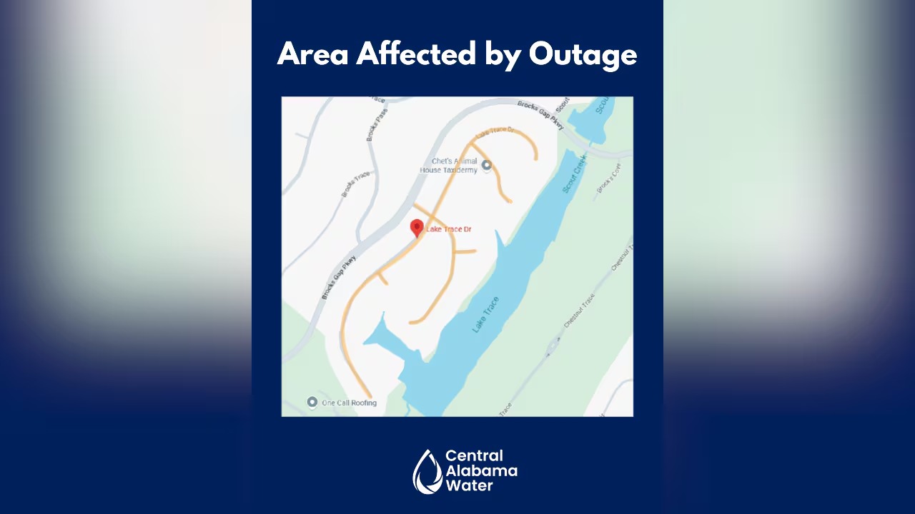 Según Central Alabama Water, los residentes del vecindario Lake Trace se verán afectados por un corte de agua programado.