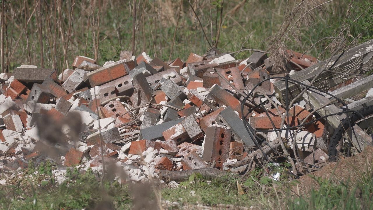 Un equipo que recorría las calles vio montones de ladrillos, equipos de juegos infantiles y neumáticos entre algunos árboles.