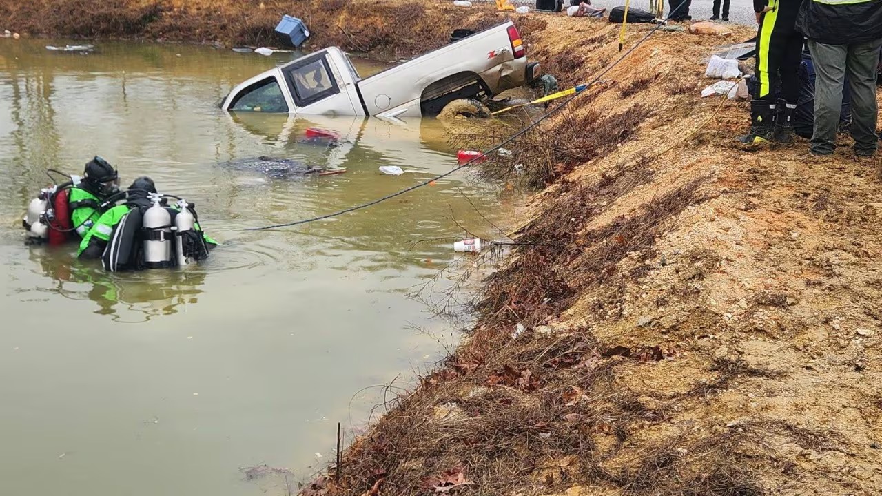 Los Troopers identificaron a la víctima como Mary Thompson, de 64 años. Dicen que Thompson conducía una Toyota Tundra 2024 cuando el vehículo abandonó la calzada, chocó contra un guardarraíl y se sumergió en un estanque cercano.