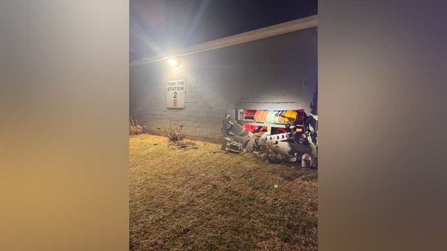 Las autoridades informaron que una persona resultó herida después de que su vehículo chocara contra una estación del Departamento de Bomberos y Rescate Voluntario de Toney (TVFR).